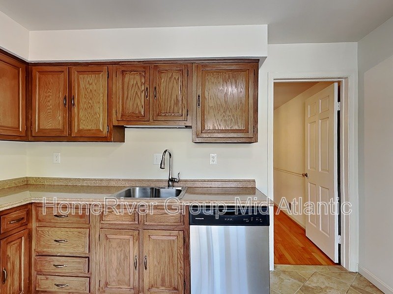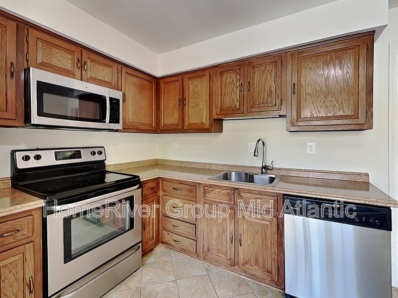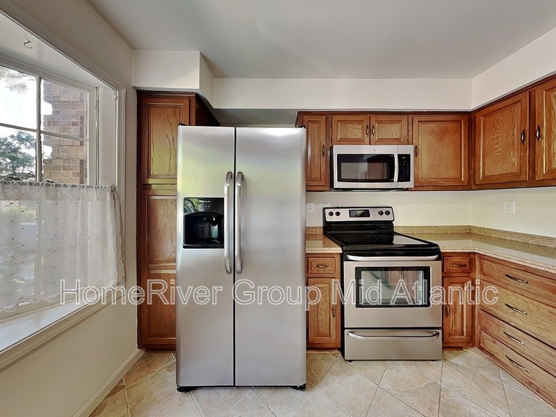 Three-bedroom townhome in sought-after Stonehurst community. Renovated eat-in kitchen with S/S appliances and oak cabinets. Gleaming oak hardwoods on 1st & 2nd levels. Spacious living room across rear with lots of light. Large master bedroom features wall of closets, built-in bookcase, and en-suite bath. Two additional bedrooms with adjoining updated hall bath. Rec. room on lower level has a wood-burning fireplace and French door leading to an inviting fenced back yard.