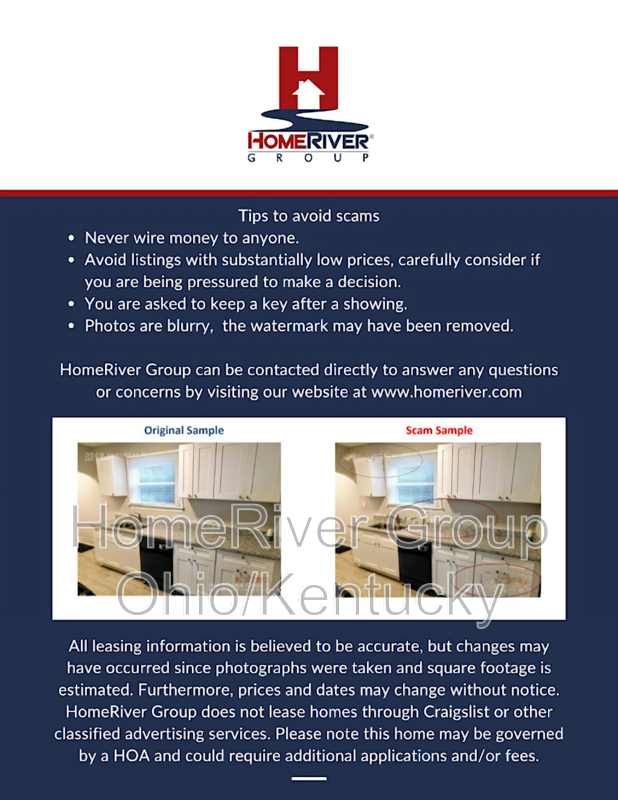 HomeRiver Group does not advertise properties on Craigslist, LetGo, or other classified ad websites. If you suspect one of our properties has been fraudulently listed on these platforms, please notify HomeRiver Group immediately. All payments related to leasing with HomeRiver Group are made exclusively through our website. We never accept wire transfers or payments via Zelle, PayPal, or Cash App. Lease your home safely through www.Homeriver.com or with the assistance of a licensed HomeRiver Group leasing agent. All leasing information contained herein is deemed accurate but not guaranteed. Please note that changes may have occurred since the photographs were taken. Square footage is estimated.