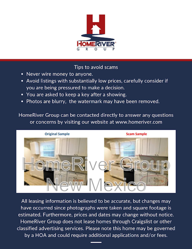 HomeRiver Group does not advertise properties on Craigslist, LetGo, or other classified ad websites. If you suspect one of our properties has been fraudulently listed on these platforms, please notify HomeRiver Group immediately. All payments related to leasing with HomeRiver Group are made exclusively through our website. We never accept wire transfers or payments via Zelle, PayPal, or Cash App. Lease your home safely through www.Homeriver.com or with the assistance of a licensed HomeRiver Group leasing agent. All leasing information contained herein is deemed accurate but not guaranteed. Please note that changes may have occurred since the photographs were taken. Square footage is estimated.