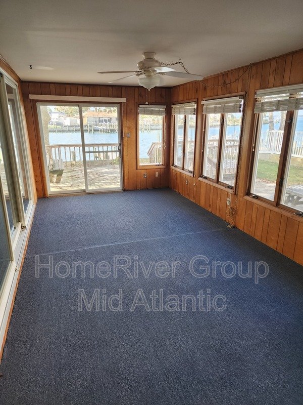 Waterfront 3 bedroom 3 bathroom home with garage storage and sunroom located on Marlin Drive in Ocean City MD. Single level house, central AC with baseboard heating. Garage included with rental but does have handicap access ramp inside so used for storage not parking. Back deck and boat dock with direct water access. Fireplace NOT operational. Spacious sunroom overlooking water off of the back bedroom and dining room. No Pets permitted and No Smoking permitted.