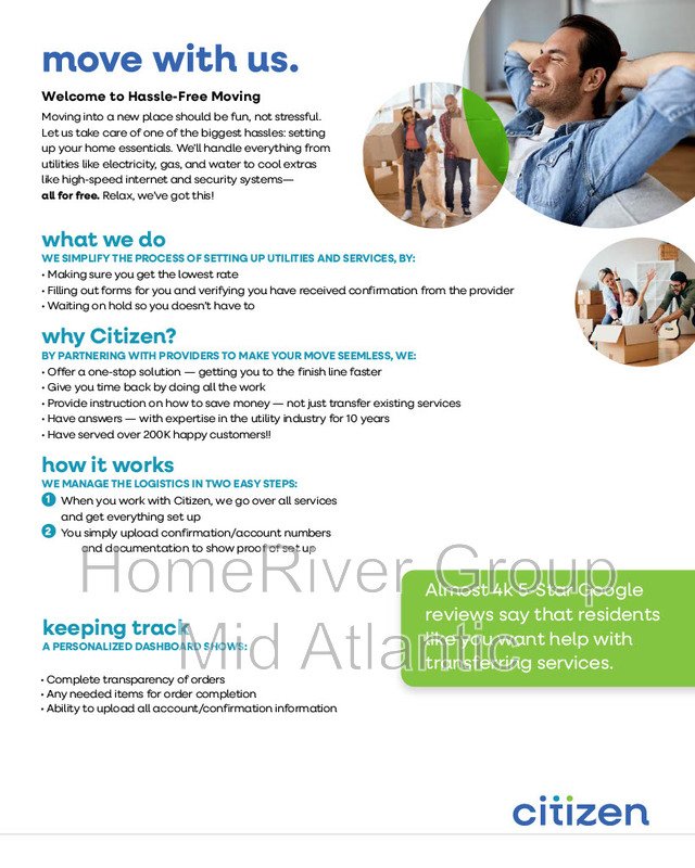 *The estimated total monthly leasing price does not include utilities or optional/conditional fees, such as: pet, utility service, and security deposit waiver fees. Our Resident Benefits Package includes required Renters Insurance, Utility Service Set-Up, Identity Theft Protection, Resident Rewards, HVAC air filter delivery (where applicable), and Credit Building, all at the additional monthly cost shown above. To learn more about additional leasing fees and requirements, please contact HomeRiver Group at 833-705-0703.
