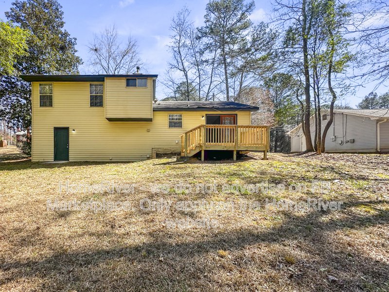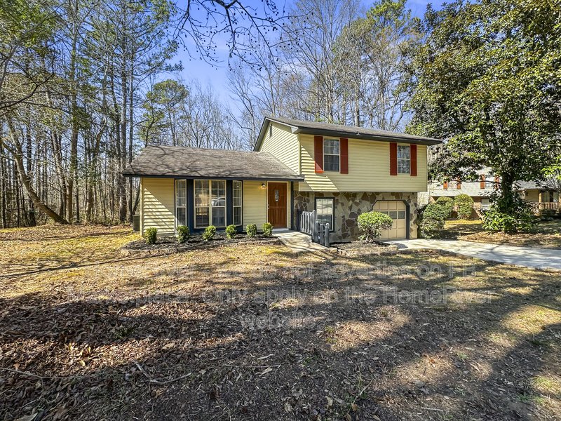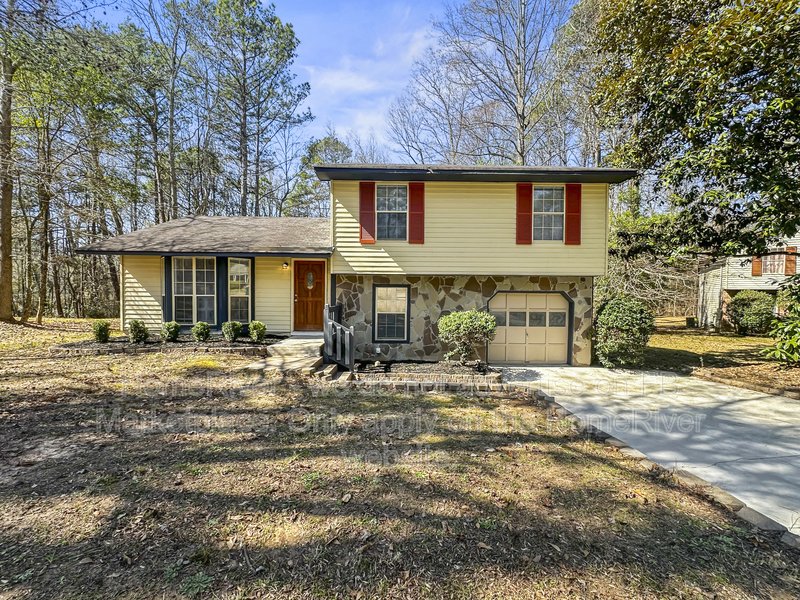 This well-maintained 3 bedroom, 2 bath home offering approximately 1,466 sq ft is situated on a wooded lot in a residential cul-de-sac setting. The exterior features a combination of siding and stone accents, a one-car garage, and a spacious driveway for additional parking. Inside, the home offers a bright and open main living area with durable wood-style flooring, neutral paint tones, and large windows that provide natural light. A ceiling fan enhances comfort in the primary living space. The layout connects seamlessly to the dining area and kitchen, creating a functional flow for everyday living. The kitchen includes rich wood cabinetry, solid surface countertops, tile backsplash, stainless steel appliances, and ample cabinet storage. Adjacent French doors lead to an elevated rear deck overlooking the backyard, offering additional outdoor living space. The home features three comfortably sized bedrooms with updated flooring and neutral finishes. Both bathrooms include updated vanities and fixtures, with a tub/shower combination in the full bath. The lower level provides additional flexible space that can be used for a variety of residential needs, along with access to the garage. The backyard offers mature trees and open space with room to enjoy the outdoors. Conveniently located near local shopping, dining, parks, and major commuter routes in DeKalb County. Disclosure: Some images have been virtually staged to better showcase the true potential of rooms and spaces in the home.