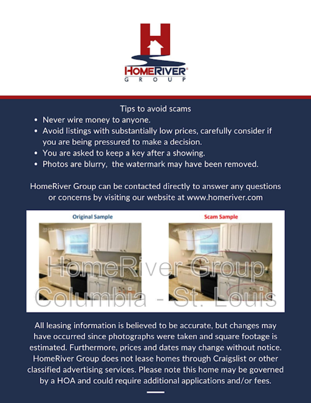 HomeRiver Group does not advertise properties on Craigslist, LetGo, or other classified ad websites. If you suspect one of our properties has been fraudulently listed on these platforms, please notify HomeRiver Group immediately. All payments related to leasing with HomeRiver Group are made exclusively through our website. We never accept wire transfers or payments via Zelle, PayPal, or Cash App. Lease your home safely through www.Homeriver.com or with the assistance of a licensed HomeRiver Group leasing agent. All leasing information contained herein is deemed accurate but not guaranteed. Please note that changes may have occurred since the photographs were taken. Square footage is estimated.