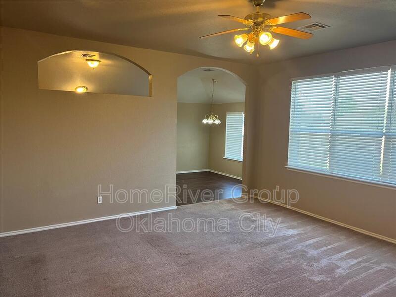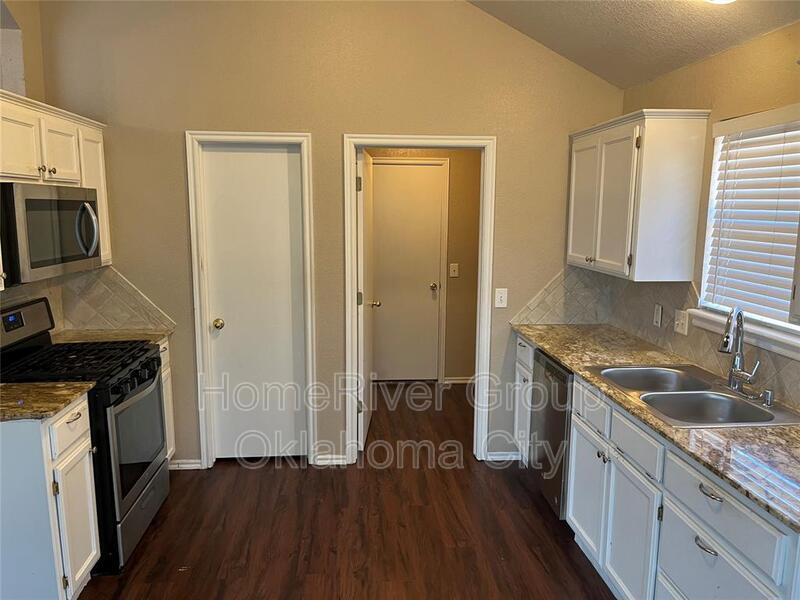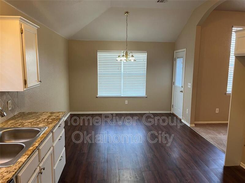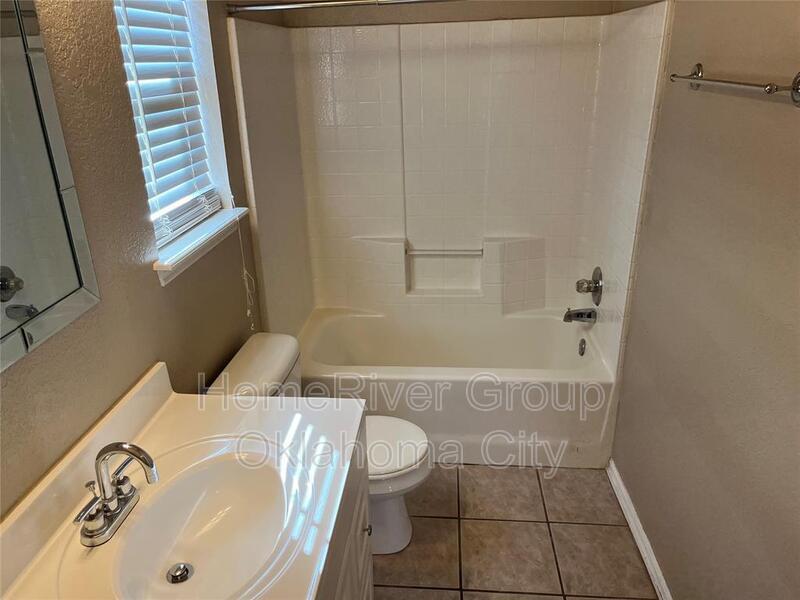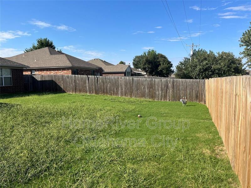 Envision yourself in this delightful 3-bedroom, 2-full-bathroom home, complete with a 2-car garage, nestled in the inviting Seminole Pointe neighborhood of Edmond. Step into the spacious living room, where soft carpeting and a stylish ceiling fan create a warm and welcoming atmosphere. The kitchen is a true culinary haven, featuring elegant wood-look laminate flooring, beautifully painted white cabinets, a cozy dining area, and a convenient pantry. It comes fully equipped with a gas cooktop, disposal, microwave, and dishwasher, making meal preparation a breeze. Retreat to the serene primary suite, adorned with plush carpeting and a ceiling fan, offering a relaxing space that includes a shower/tub combo and a generous walk-in closet. Additional highlights of this charming home include 2-inch blinds for added privacy, a functional laundry room, a covered porch perfect for morning coffee, an open patio for entertaining, and a spacious fenced backyard that invites outdoor enjoyment and relaxation. One small dog will be considered. This home is a perfect blend of comfort and style, ready to welcome you!