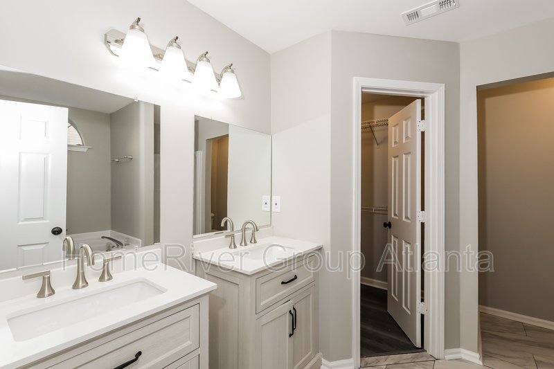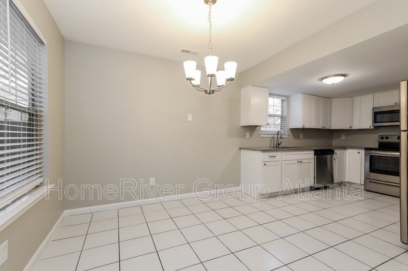 Picture yourself in this beautiful 3 bedroom 2.5 bath home offering 1408 q ft of living space. Beautiful 3 bed 2 bath WITH 2 CAR GARAGE. Nestled in a peaceful neighborhood, this 3-bedroom, 2-bathroom home offers a serene retreat. Spacious and inviting living area, bathed in natural light, making it the perfect place for gatherings or relaxation. Tile and luxury planking flooring throughout! The well-appointed kitchen boasts modern appliances and ample counter space, with separate dining area, allowing you to unleash your inner chef. Modern bathrooms with separate rectangle sink/cabinet for excellent storage space. Good sized bedrooms. Full 2 car garage for storage and ample room for both cars. Within minutes from Tyler Perry Studios.