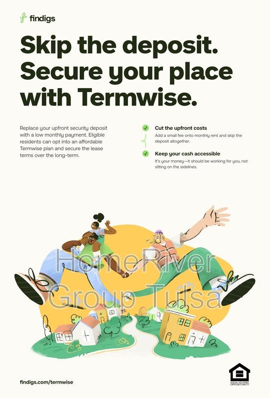 HomeRiver Group has partnered with Termwise to offer an affordable alternative to an upfront cash security deposit. Eligible residents can choose between paying an upfront security deposit or replacing it with an affordable Termwise monthly security deposit waiver fee. For more information, ask your leasing agent or visit https://www.findigs.com/blog/skip-the-deposit-with-termwise-a-new-way-to-secure-your-rental.