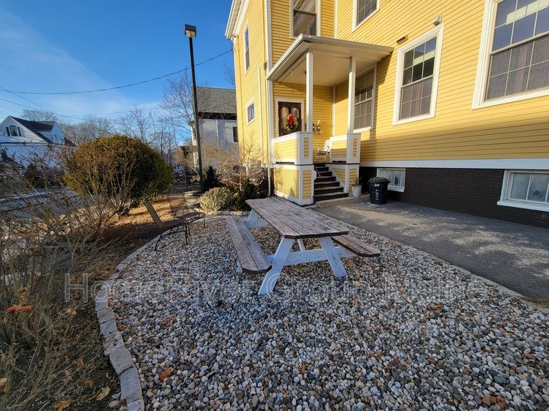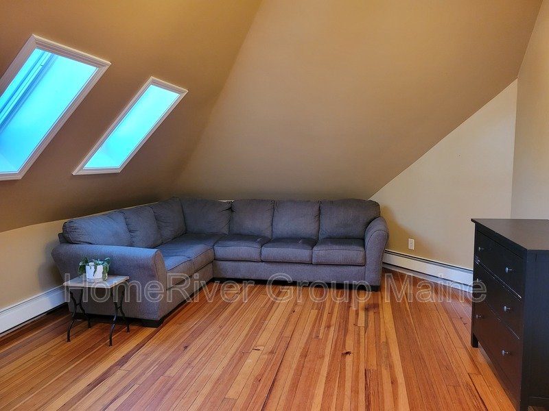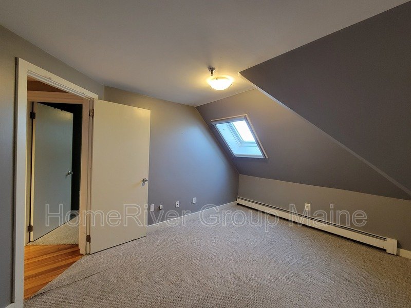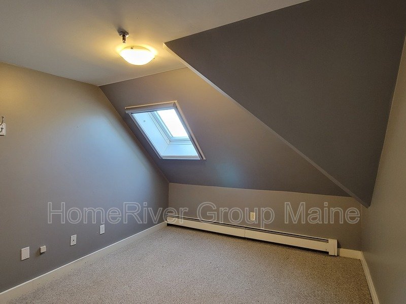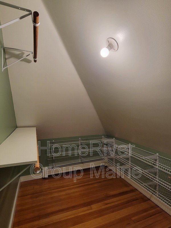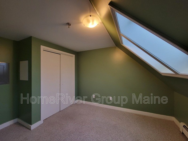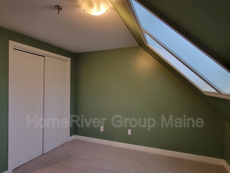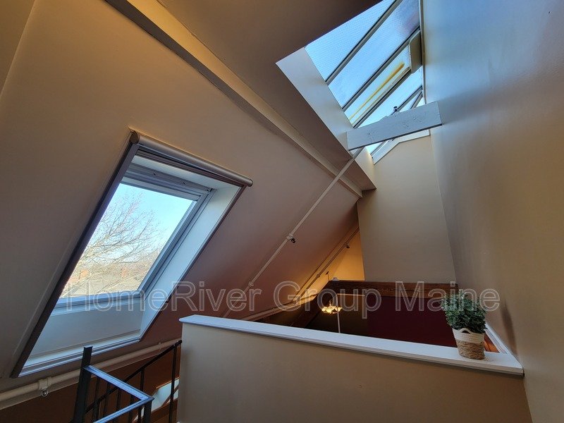 This unit is located on the third floor and consists of two bedrooms with 900 square feet of living space. The rent includes heat, making it a great deal. The space has a unique open concept design with exposed beams and a spiral staircase. Additionally, there is a bonus loft area. Skylights allow for plenty of natural light, and the high ceilings contribute to a spacious atmosphere. Another rare feature is the inclusion of two off-street parking spaces, One is at the end of the driveway out back. The other is in front of the side entrance.. In the basement, there is a shared washer and dryer, which are free to use and not coin-operated.